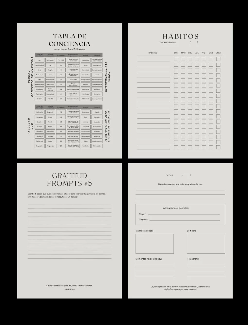 – Páginas de manifestación, selfcare y estudio espiritual.